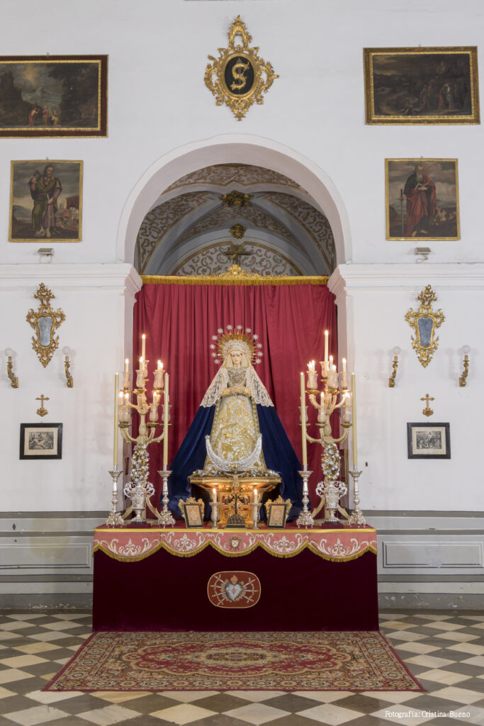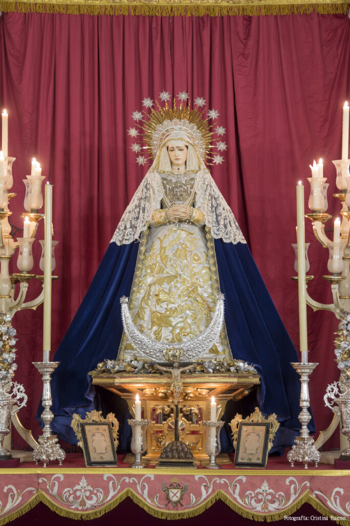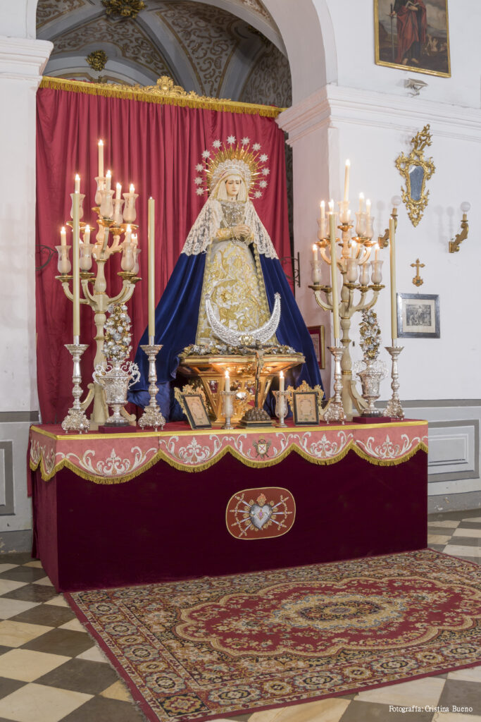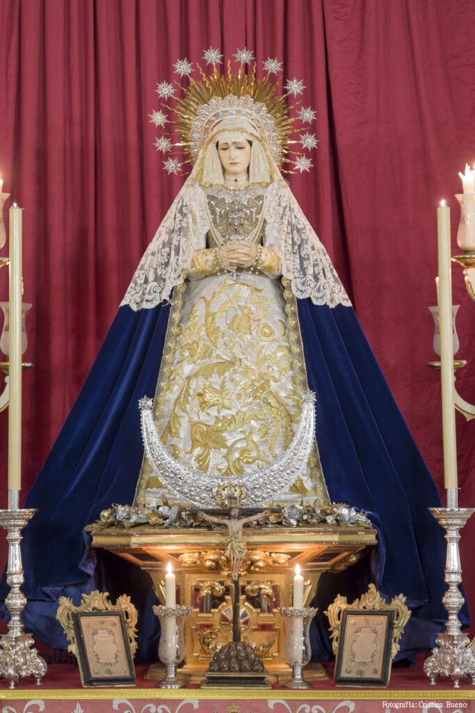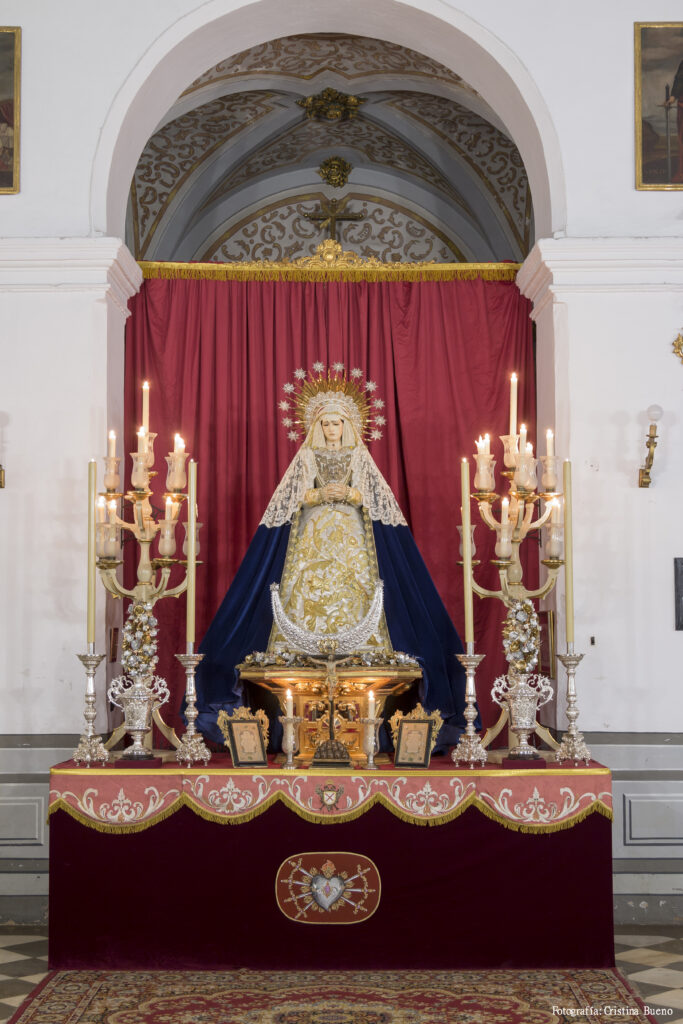 Así se presenta, Nuestra Señora de los Dolores al encuentro con Nuestro Padre Jesús del rescate en nuestra sede parroquial De San Pedro y San Pablo con motivo del I Centenario Fundacional de la Cofradía de Nuestro Padre Jesús del Rescate.