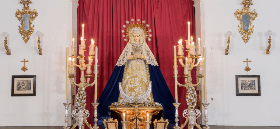 Así se presenta, Nuestra Señora de los Dolores al encuentro con Nuestro Padre Jesús del rescate en nuestra sede parroquial De San Pedro y San Pablo con motivo del I Centenario Fundacional de la Cofradía de Nuestro Padre Jesús del Rescate.