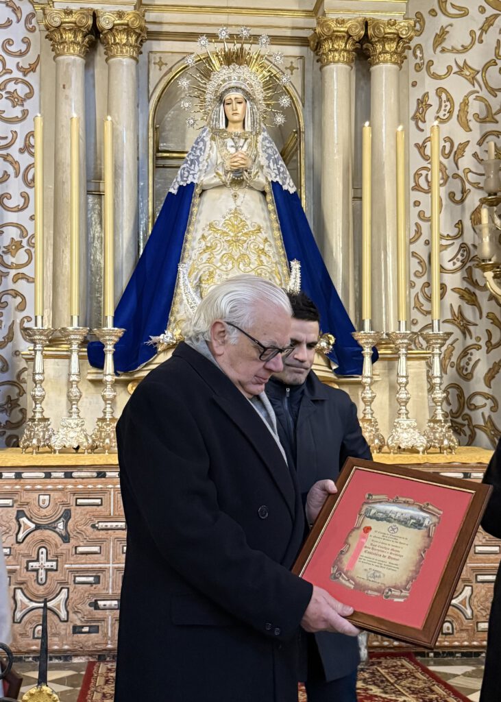 Se hizo entrega de los nombramientos de Costaleros de Honor, reconociendo la entrega silenciosa y el amor desinteresado de quienes siempre caminan junto a nuestra cofradía: D. Francisco Bedmar, Dña. Pilar Agudo, el Colegio Mayor San Bartolomé y Santiago y las Madres del Convento de Santa Catalina de Siena.